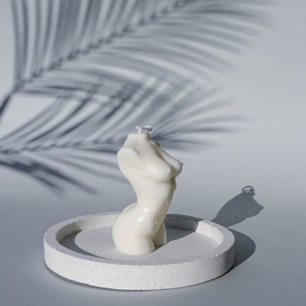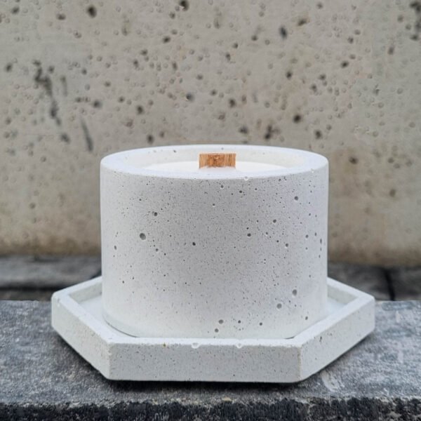 Šešiakampis padėkliukas ir cilindro formos žvakė